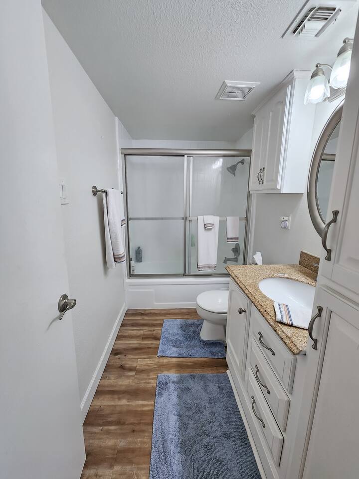 Guests have access to the full unit, except for the locked outdoor closets. Use of community pool, hot tub and grill. There is not a dedicated parking spot but there are many visitor parking spots available.